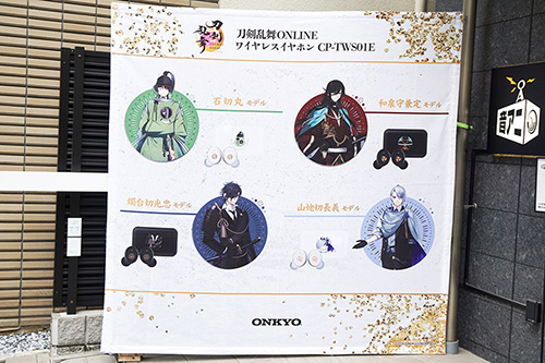 音アニ2号店では、ゲーム「刀剣乱舞ONLINE」とONKYOのコラボレーションモデルの展示及び受注販売が行われていました。ANC搭載完全ワイヤレスイヤホン「CP-TWS01E」をベースにしたモデルで、「石切丸」「燭台切光忠」「和泉守兼定」「山姥切長義」の4モデルをラインナップ、受注期間は10月31日(金)まで。