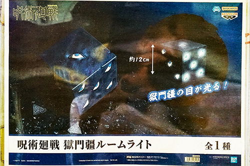 取材中に見かけた新作プライズをご紹介。「ちいかわ ゴブリンBIGぬいぐるみ」や、「クレヨンしんちゃん」の野原ひろしと園長先生を立体化したプライズフィギュア、「呪術廻戦」の獄門疆を模したルームライトなどが登場していました。