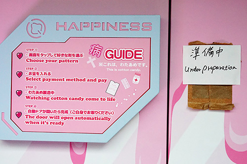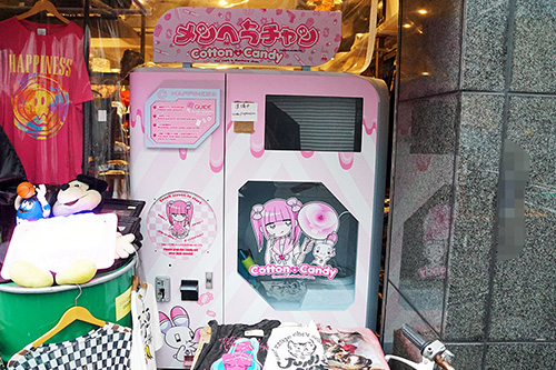 JUNK SIDEの店頭に見慣れない機械を発見。「メンヘラチャンCotton Candy」と書かれていて、どうやらわたあめマシンらしいのですが稼働はしておらず、「準備中」の張り紙が。