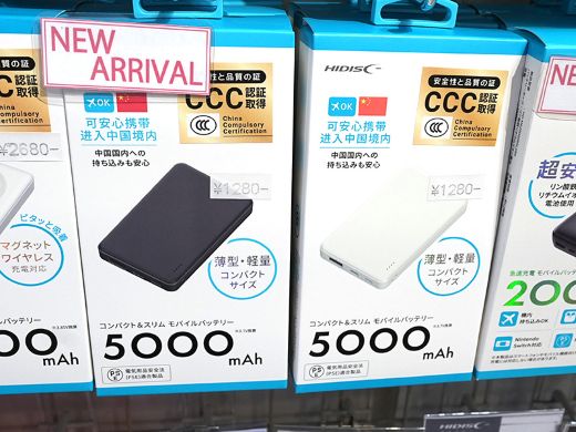 2025年6月末より中国では、3C認証を取得していないモバイルバッテリーなどを、中国国内線の機内へ持ち込むことが禁止されており、本製品についてHIDISCでは「中国国内への持ち込みも安心」などとしている。