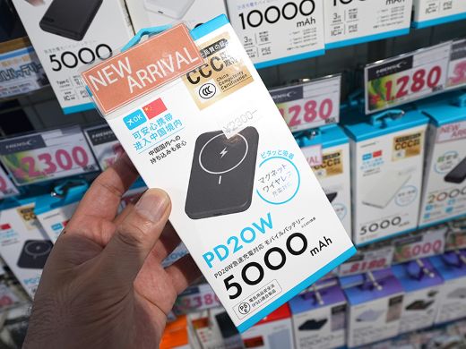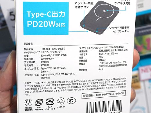 店頭価格はワイヤレス充電非対応の5,000mAhモデル(10W出力)が1,280円、ワイヤレス充電対応の5,000mAhモデル(PD 20W)が2,000円、同10,000mAhモデルが2,680円。