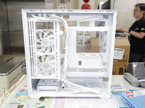 ピラーレスデザインを採用した玄人志向製microATXケース「KRC-mT01W」の実機展示が、ツクモパソコン本店で始まっている。