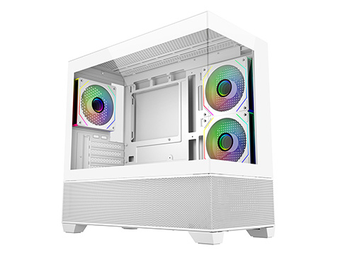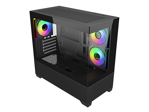 Elite 490シリーズは、フロントと左サイドに強化ガラスパネルを搭載したPCケース。ピラーレスデザインを採用しており、システムを広角で美しく見せ、ライティングや主要コンポーネントを際立たせるという。対応マザーボードはmicroATX/Mini-ITX。