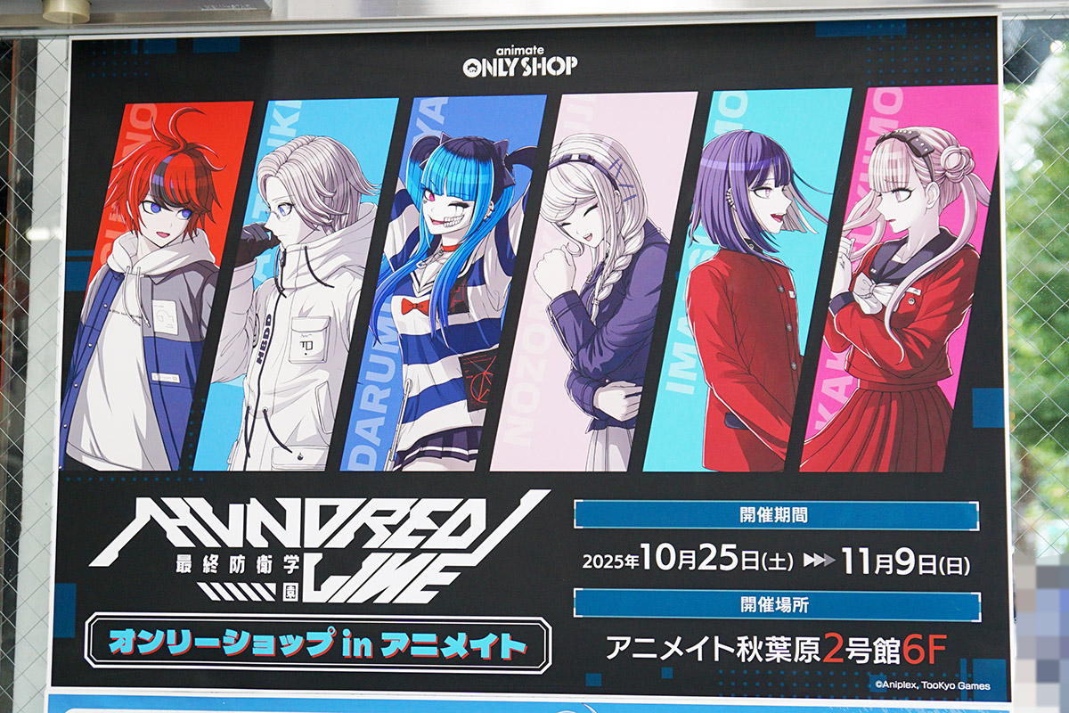 アニメイト秋葉原2号館の6階では、ゲーム「HUNDRED LINE -最終防衛学園-」のオンリーショップが開催されていました。期間は11月9日(日)まで。