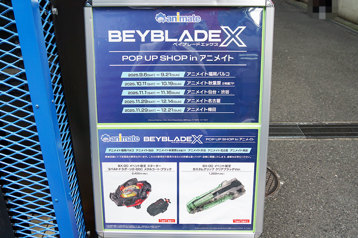 また、7階で19日まで開催されていた「ベイブレードX」のポップアップショップでは、イベント限定のベイブレードやカスタムグリップが販売されていました。