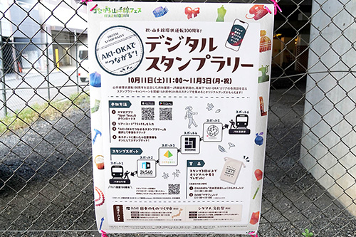キャンプ練習場campass秋葉原に、「祝・山手線環状運転100周年!」デジタルスタンプラリーの告知ポスターが掲載されていました。JR秋葉原駅~御徒町駅間巡ってスタンプを集めるとオリジナル巾着が貰える、スマホアプリを使ったデジタルスタンプラリーとなっています。期間は11月3日(月・祝)まで。
