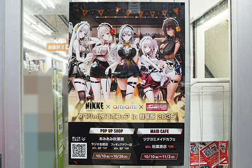 「勝利の女神:NIKKE」×「あみあみ」×「ツクヨミメイドカフェ秋葉原店」のスペシャルコラボフェアが開催。「あみあみ秋葉原フィギュアタワー店」および「あみあみ秋葉原ラジオ会館店」では、描き下ろしグッズの販売や新作フィギュアの展示が行われていました。期間は10月26日(日)まで。