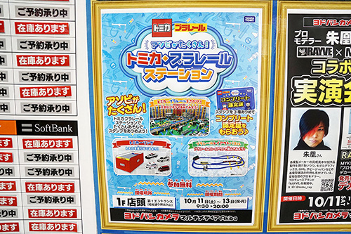 ヨドバシカメラマルチメディアAkiba1階のイベントスペースでは「アソビがたくさん!トミカ・プラレール ステーション」が開催されていました。人気のトミカ・プラレールが手に取って遊べるイベントで、多くの親子連れで賑わっていました。