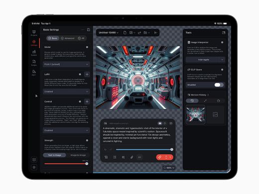 前世代比でレイトレーシング3Dレンダリング(Octane X)が1.5倍、AI画像生成(Draw Things for iPad)が最大2倍、AIビデオアップスケーリング(DaVinci Resolve for iPad)が最大2.3倍高速になっているとする。