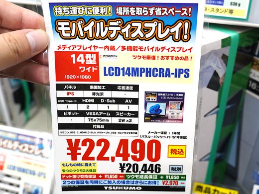 スタンド付きの14インチ液晶モニター「14型IPS液晶メディアプレーヤー内蔵マルチモニター(LCD14MPHCRA-IPS)」が、ITPROTECHから発売。