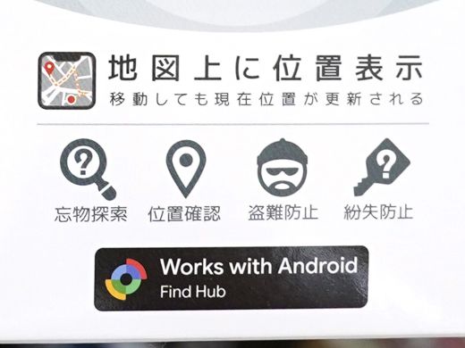 ペアリングしたスマートフォンから離れても第三者のAndroidデバイス経由で位置情報が追跡できるため、タグを付けた鍵や鞄などの紛失時もGoogleマップ上へ位置表示できるのが特徴。