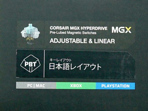 キースイッチには独自の「CORSAIR MGX Hyperdrive」磁気スイッチを採用。0.1~4mmのアクチュエーションポイント調整や、ラピッドトリガー機能に対応する。スイッチのホットスワップも可能。
