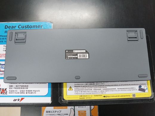 メインボディ素材はアルミニウム+ABS、キーキャップ素材はロープロファイル・ダブルショットPBT(透過しない)。
