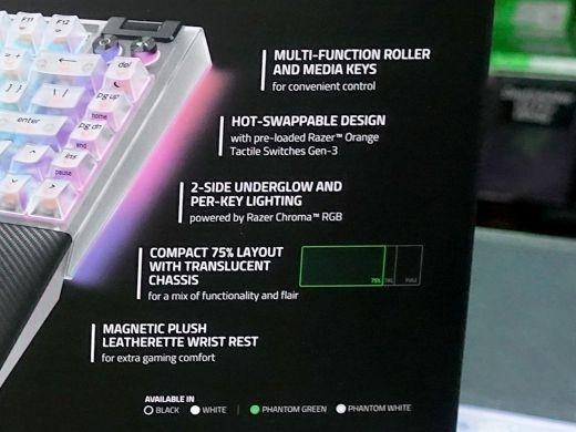 「BlackWidow V4 75% Phantom White Edition」は、75%レイアウトのゲーミングキーボード。価格は34,080円。
