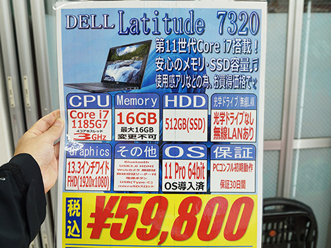 Core i7-1185G7/512GB SSD/Windows 11搭載の「Latitude」が59,800円から!中古PCセール