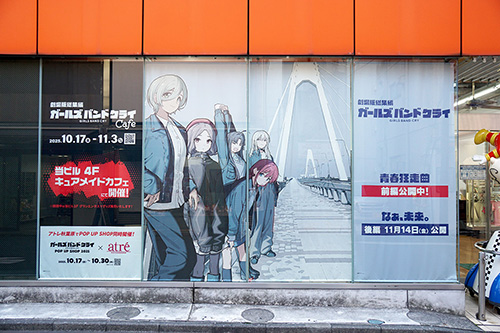 オノデン4階のキュアメイドカフェでは、劇場総集編「ガールズバンドクライ」のコラボカフェが開催されていました。また、1階グランエンタスでは関連グッズの販売も実施。開催期間は11月3日(月・祝)まで。