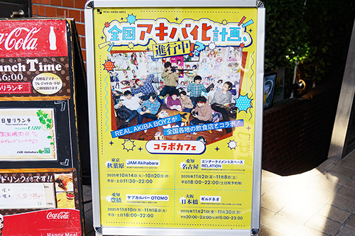 JAM Akihabaraでは、リアルアキバボーイズとコラボレーションした「全国アキバ化計画、進行中!?」コラボカフェを開催。秋葉原にちなんだケバブとカレーのコラボフードのほか、各メンバーをイメージしたドリンクメニューの販売が行われていました。。