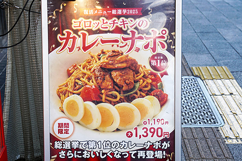 また、復活メニュー総選挙2025で1位となった「ゴロッとチキンのカレーナポ」が期間限定で販売していました。