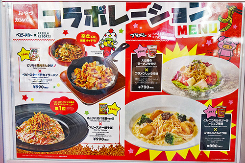 カラオケパセラ 秋葉原電気街店では、「おやつカンパニー」とコラボレーションしたキャンペーンが開催されていました。「おやつカンパニー」のベビースターやブタメンを使用したコラボメニューを期間限定で販売しています。