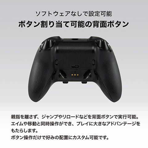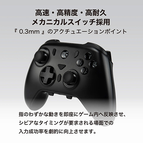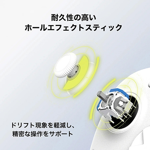 本体には耐久性の高いホールエフェクトスティックや各種ボタン、十字キー、背面ボタンを備えており、高速・高精度・高耐久なメカニカルスイッチを採用している。