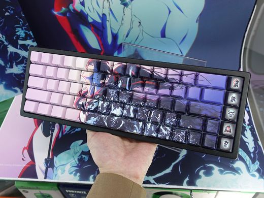 専用PBTキーキャップと、特別デザインのガラスプレートを配した外観が特徴。英語配列モデルで、8Kポーリングに対応する。