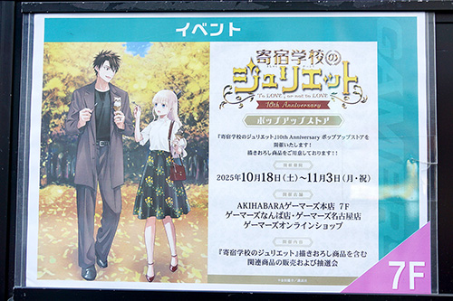 また、同店7階では「へべれけばにーがーでん」と「まじかる☆クリッと依久乃ちゃん」合同ポップアップストア(11月9日(日)まで)や、「寄宿学校のジュリエット」10周年記念ポップアップストア(11月3日(月・祝)まで)も開催されていました。