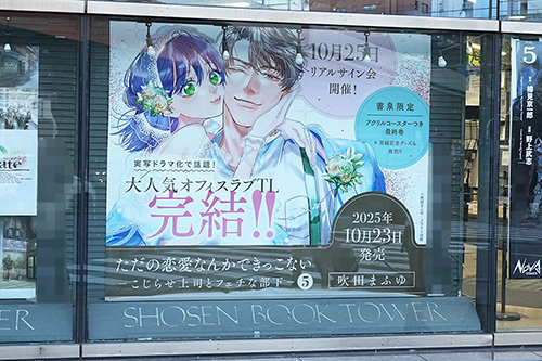 書泉ブックタワーでは、漫画「ただの恋愛なんかできっこない -こじらせ上司とフェチな部下-」の完結を記念した吹田まふゆ先生のサイン会が告知されていました。