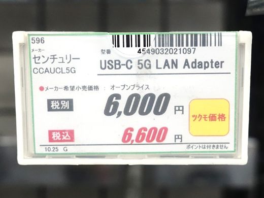 USB Type-C接続の5Gigabit LANアダプタ「USB-C 5G LAN Adapter(CCA-UCL5G)」がセンチュリーから登場。店頭価格は6,600円。