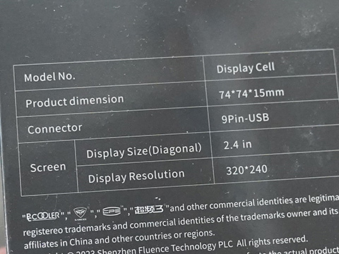 DISPLAY CELLはディスプレイサイズが2.4インチ、解像度が320×240のIPSディスプレイ。リフレッシュレートは60Hz。接続にはマザーボードのピンヘッダまたはUSB Type-Aを用いる。
