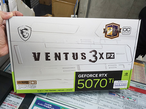 白い3連ファンクーラーを採用したGeForce RTX 5070 Ti搭載カード「GeForce RTX 5070 Ti 16G VENTUS 3X PZ OC」がMSIから発売された。