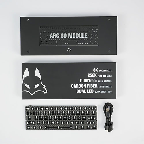 ARC 60 8K PCB Module Kitは、磁気スイッチ対応のキーボードPCB、カーボンファイバープレート、フォームダンパーのセット。