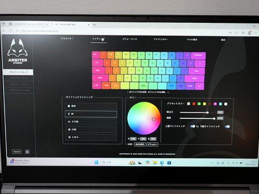 各キーにデュアルLEDバックライトを配置し、キー全体を均一に明るく照らすことができるとしている。各種設定はWebドライバーから変更できる。