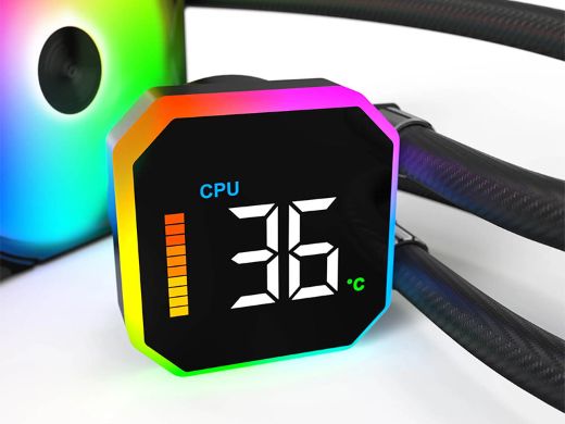 これらは、ポンプ部にCPUとGPUの温度をリアルタイム表示できるデジタルディスプレイを搭載した簡易水冷CPUクーラー。