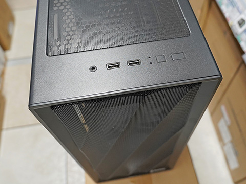 これは、本体サイズが206×487×404mmのミドルタワーケース。フロントパネルは波型デザインで、全面にパンチング加工が施されている。