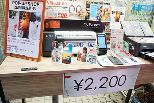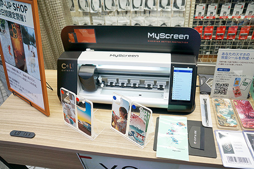 浜田電機の店頭では、手持ちの画像からスマートフォン向けの背面シールが作成できる「Myscreen」のポップアップイベントが行われていました(開催日は10月31日と11月6日)。