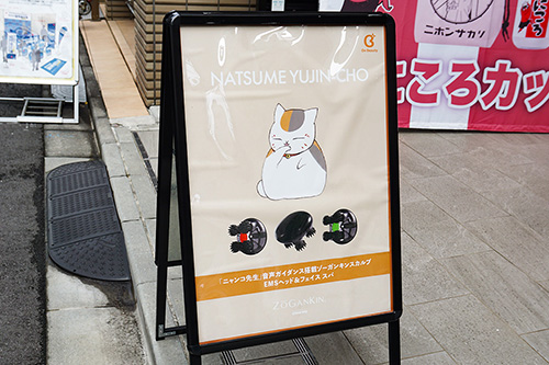 音アニ2号店では、「夏目友人帳」とコラボレーションしたゾーガンキンスカルプ(EMSヘッド&フェイススパ)の受注販売が行われていました。「ニャンコ先生」の音声ガイダンス付きモデルで、店頭実機展示も行っています。