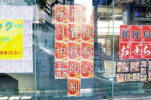 神田郵便局では、年末年始に向けて「年賀はがき」が販売されていました。12月に入ると年末まであっという間なので、今のうちに年賀状の準備をしておくと忙しい年末に多少の余裕が持てるかもしれません。