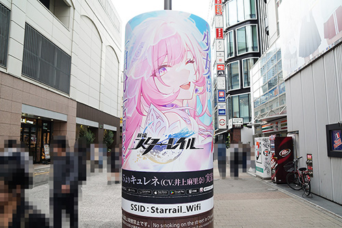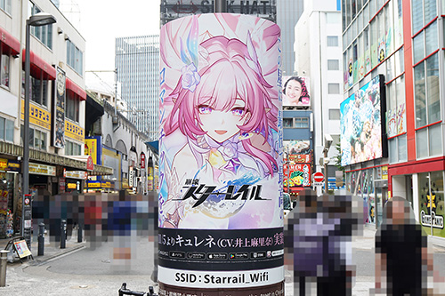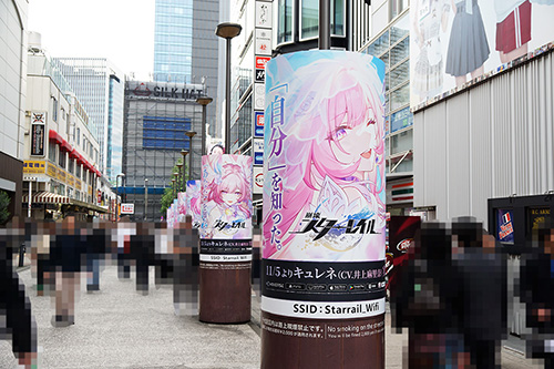 JR秋葉原駅 電気街口西側広場の円柱広告が更新。「崩壊:スターレイル」の新規キャラクター「キュレネ」実装を告知する内容となっていました。