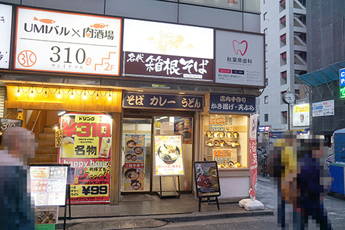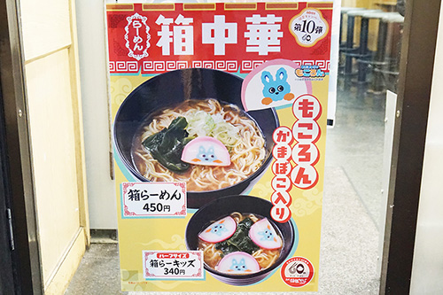 名代 箱根そば 秋葉原店では、小田急電鉄のマスコットキャラクター「おだきゅうのもころん」とコラボレーションした"もころん かまぼこ入り"のメニューが販売されていました。