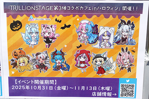 White&CrossLoadでは、VTuberグループ「TRILLIONSTAGE」(11月13日(木)まで)と、「真・恋姫夢想-革命-」&「あっぱれ!天下御免シリーズ」(11月9日(日)まで)のコラボカフェが開催されていました。