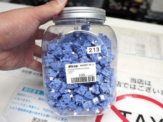DangkeebsのCherryMX互換キースイッチ「Blueberry Milk Tactile Switch」が、遊舎工房に入荷。店頭価格は1個100円。