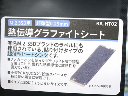 これは、優れた熱伝導性と放熱性をもつという貼り付けタイプのM.2 2280 SSD用薄型ヒートシンク。