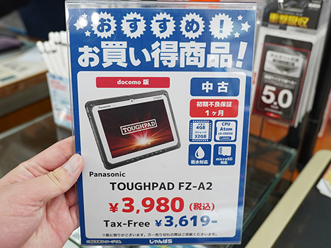 Panasonicの10.1インチタブレット「TOUGHPAD FZ-A2」の中古品が、じゃんぱら秋葉原5号店などじゃんぱら各店で特価販売中。