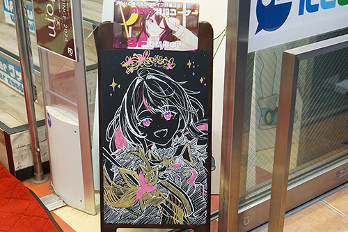 取材中に見かけたホワイトボード、黒板、看板などをご紹介。FandomAkibaは「ぶいすぽっ!」や「ホロライブ」所属VTuberのイラストを掲載。なんと1週間で3枚もの新規イラストが出ていました。