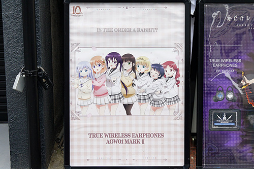 音アニ1号店では、アニメ「ご注文はウサギですか?」の10周年を記念したコラボイヤホンの店頭展示・受注販売が行われていました。ONKYOの完全ワイヤレスイヤホン「AOW01 MARK II」とコラボレーションしたモデルとなっています。