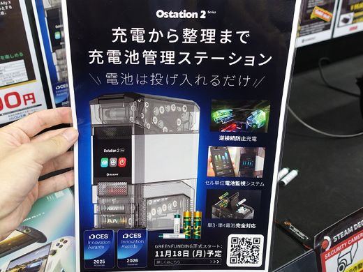 電池を放り込むだけで使える充電ステーション「Ostation 2」が登場、パソコン工房で展示中