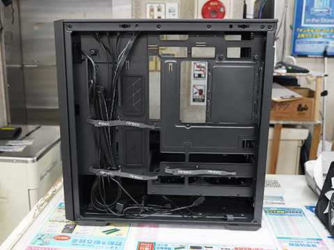 標準搭載ファンはフロントに140mm(ARGB PWM)×2、PSUカバーに120mm(リバースPWMファン)×2、リアに140mm(ARGB PWM)×1を搭載。PSUチャンバー上の120mmリバースファン×2は、GPUなどの拡張カードをダイレクトに冷却できるという。また、トップに別途用意したファン(120mm×3または140mm×2)を搭載できる。