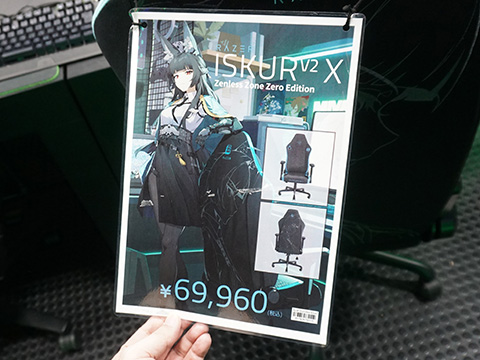 HoYoverseのアクションRPG『ゼンレスゾーンゼロ』とのコラボデザインゲーミングチェア「Iskur V2 X Zenless Zone Zero Edition」の実機展示がTSUKUMO eX.で始まっている。