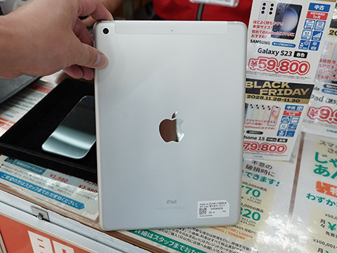 セール品のラインアップと価格は「iPhone 15 128GB」の中古品が79,800円、「第3世代iPhone SE 64GB」の中古品が29,800円、「第5世代iPad 32GB SIMフリー」の中古品が9,980円、「Galaxy S23 256GB」の中古品が59,800円。