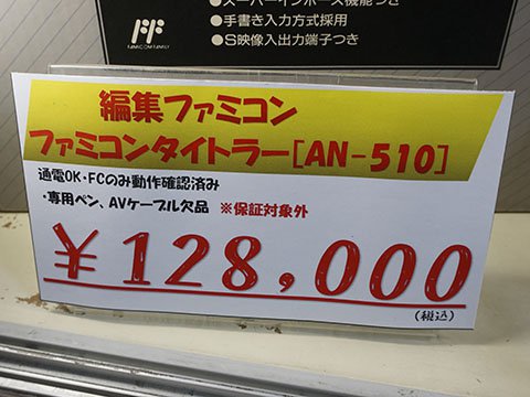 「通電OK・FCのみ動作確認済み」「専用ペン、AVケーブル欠品」「保証対象外」という中古品で、店頭価格は128,000円。